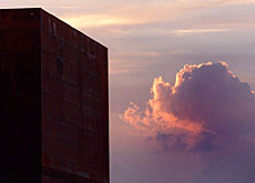 One of the most unusual objects to be offered for sale was too big to fit inside the auction room: a giant, rusting cube known as the Monolith, one of the most popular attractions at the Expo.02 site on Lake Murten.