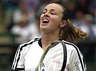 Martina Hingis reacts to a point scored against China's Jing-Qian Yi Keystone