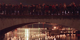 At precisely 6pm, about 800 candles will be launched from the Rathaus Bridge in the middle of the old town into the river.