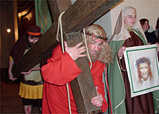 The identity of the man who will play Christ is kept secret from the rest of the performers until the end of the procession.