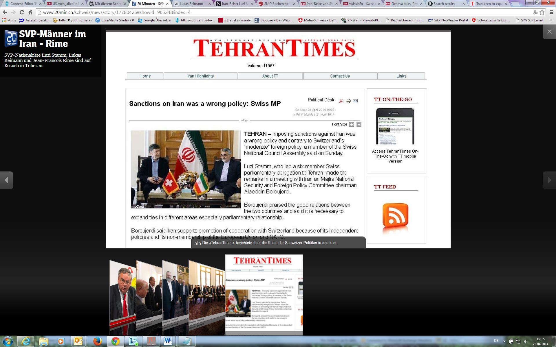 Afterwards, the Tehran Times quoted Aargau representative Luzi Stamm as saying that imposing sanctions against Iran was a “wrong policy”. Questioned about his remarks back home, Stamm has confirmed what he said in Tehran.