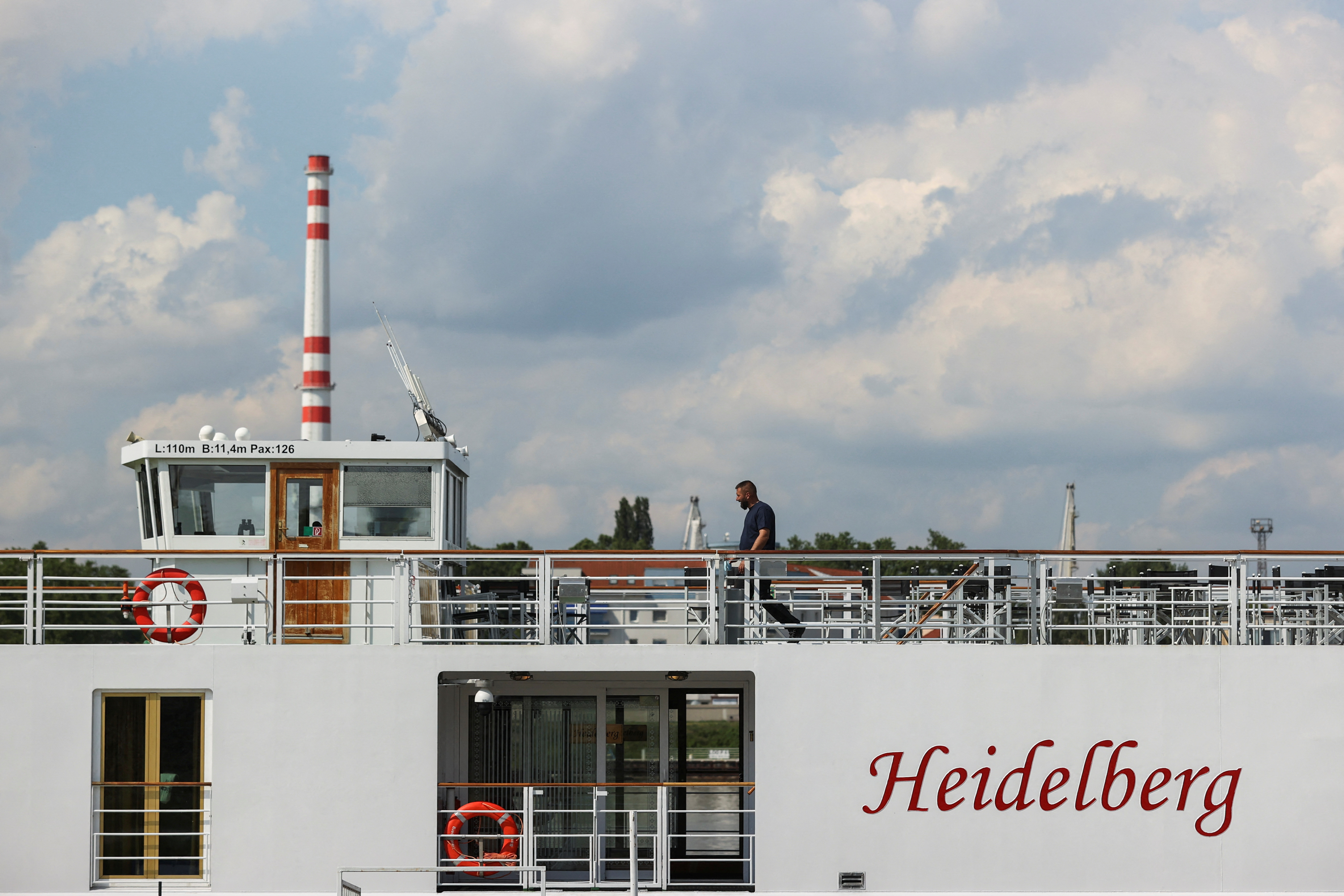 On Sunday, a Reuters news team saw the cruise ship Heidelberg moored in the northern Danube river town of Komarom, upstream from the site of the collision, with large scratches visible on the bow.