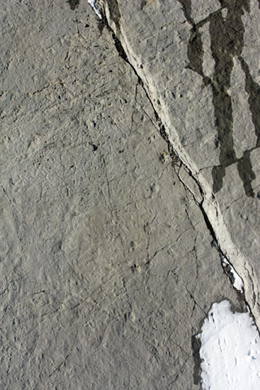 The footprints cross a vertical rock face of the Piz Ela mountain in central Graubünden. But about 250 to 200 million years ago the cliff was part of a flat seafloor which some 140 to 150 million years later – through what is known as the influence of plate tectonics – became Europe’s highest mountain belt, the Alps.