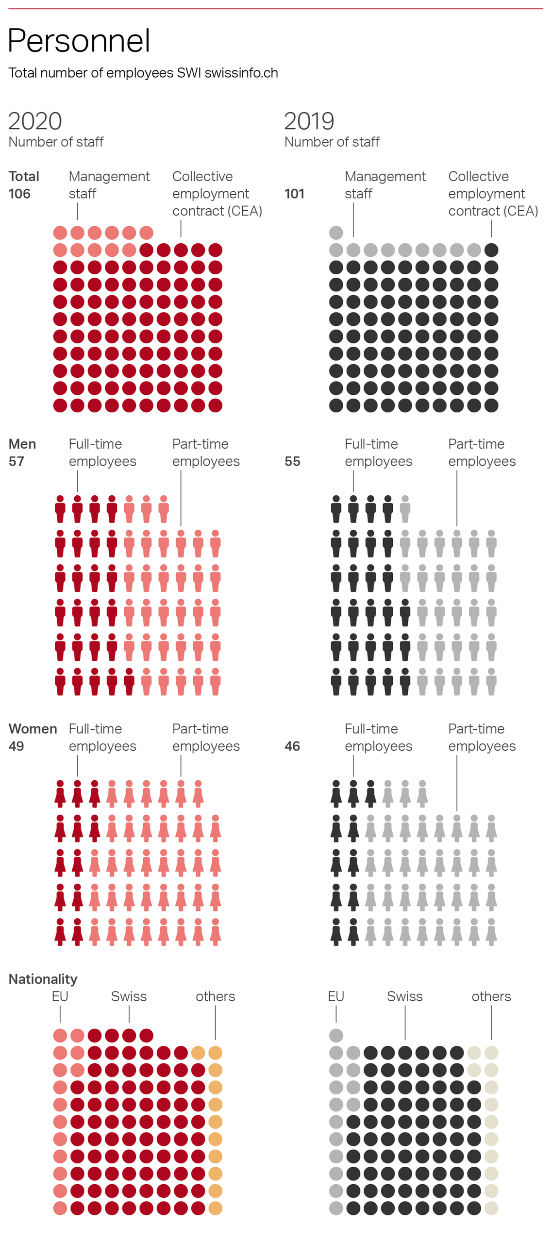 But the year was also special for another reason. We welcomed some 15 new members of staff and two new members of the SWI swissinfo.ch executive board: Maryline Cerf, head of Human Resources, and Ladina Luppi da Silva, head of Marketing and Partnerships. Our sincere thanks go to all our new colleagues for their dedicated start in their “Home Office”!