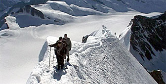 A select group of seven British climbers and Swiss guides has made a successful assault on the summit of the Mönch, 4,099 metres above sea level. The team has now clocked up its second Alpine peak in as many days on the fourth leg of a ten-day long mountain expedition.