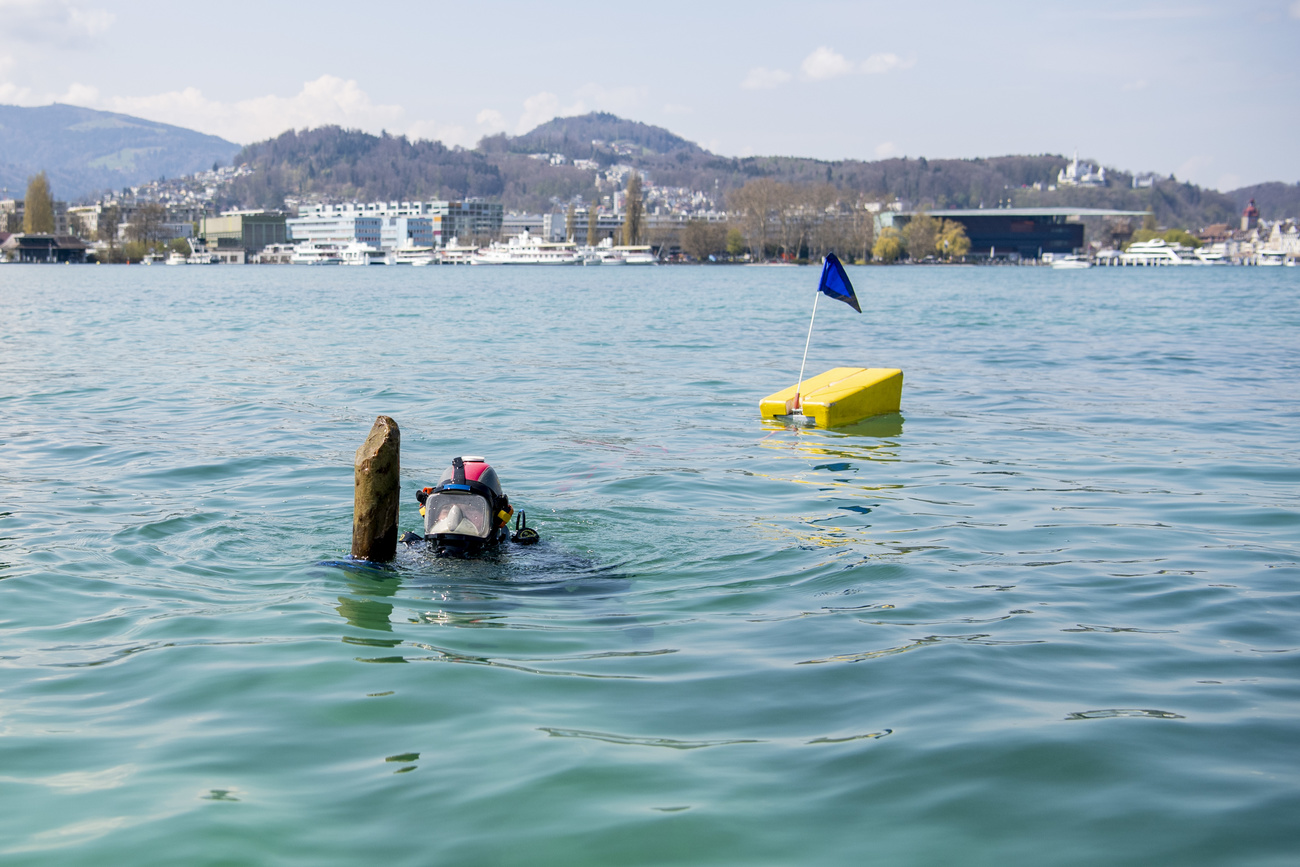 In 2020, archaeologists discovered traces of a pile dwelling (or stilt house) village while laying a pipeline in Lucerne’s natural harbour area. Keystone / Urs Flueeler