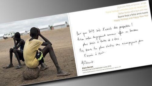 Swiss President Alain Berset has chosen a different type of Christmas message. “The choice of card is linked to the three refugee camps he visited during his year as president: that of the Rohingyas in Bangladesh, one in Lebanon and one in Kenya, pictured here,” explains the home affairs ministry. “In these camps there are many adolescents and children who all need perspectives for the future.”