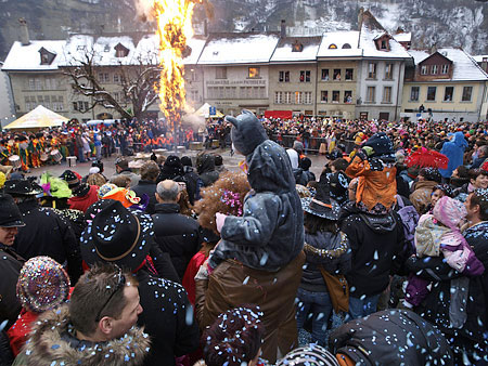 Ten thousand people gathered in Fribourg’s Old Town on February 22 to witness the Carnival of Bolzes and the sentencing to death, yet again, of poor old Rababou, the unloved embodiment of winter. (All pictures: JJ Béguin)