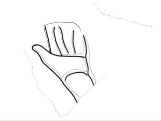 A hand, highly stylised, section 30 x 25 cm, Wadi Imrawen.