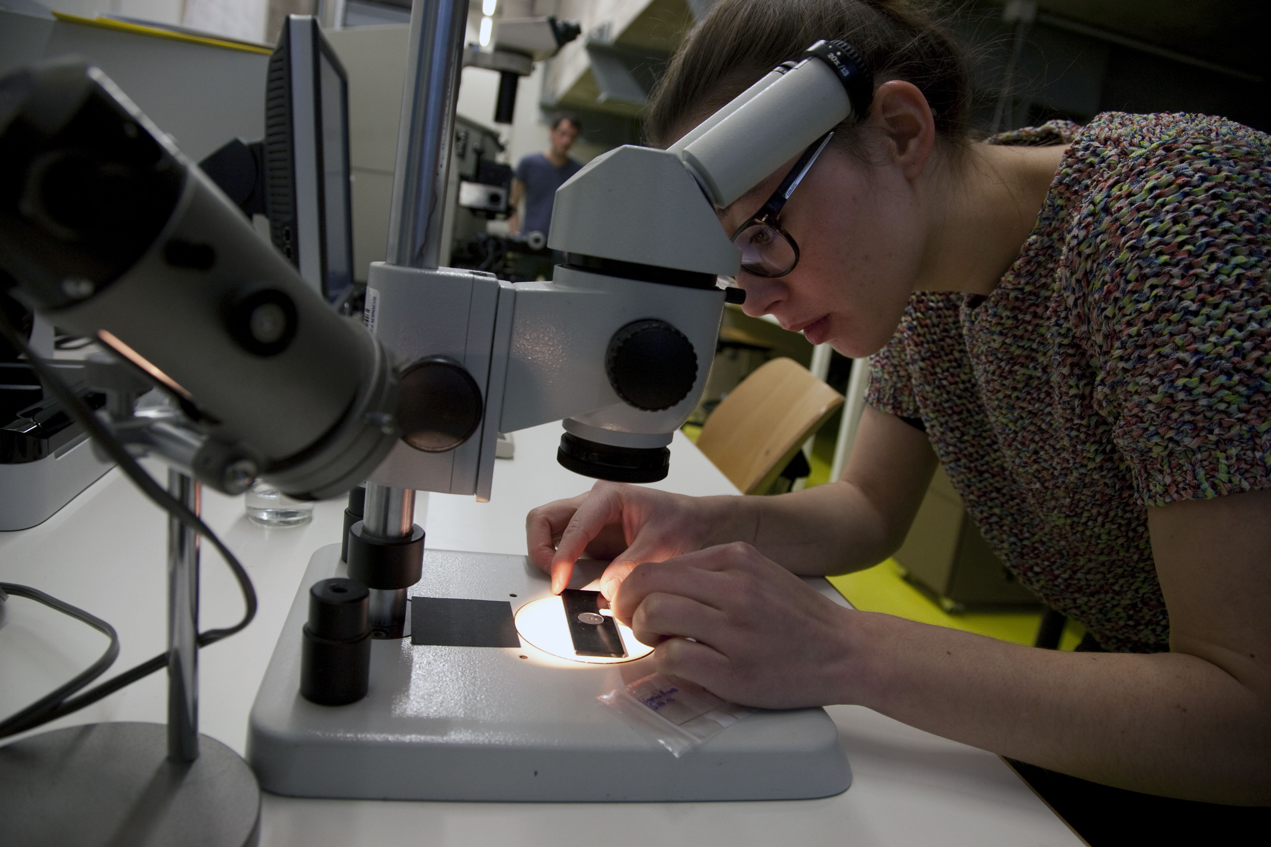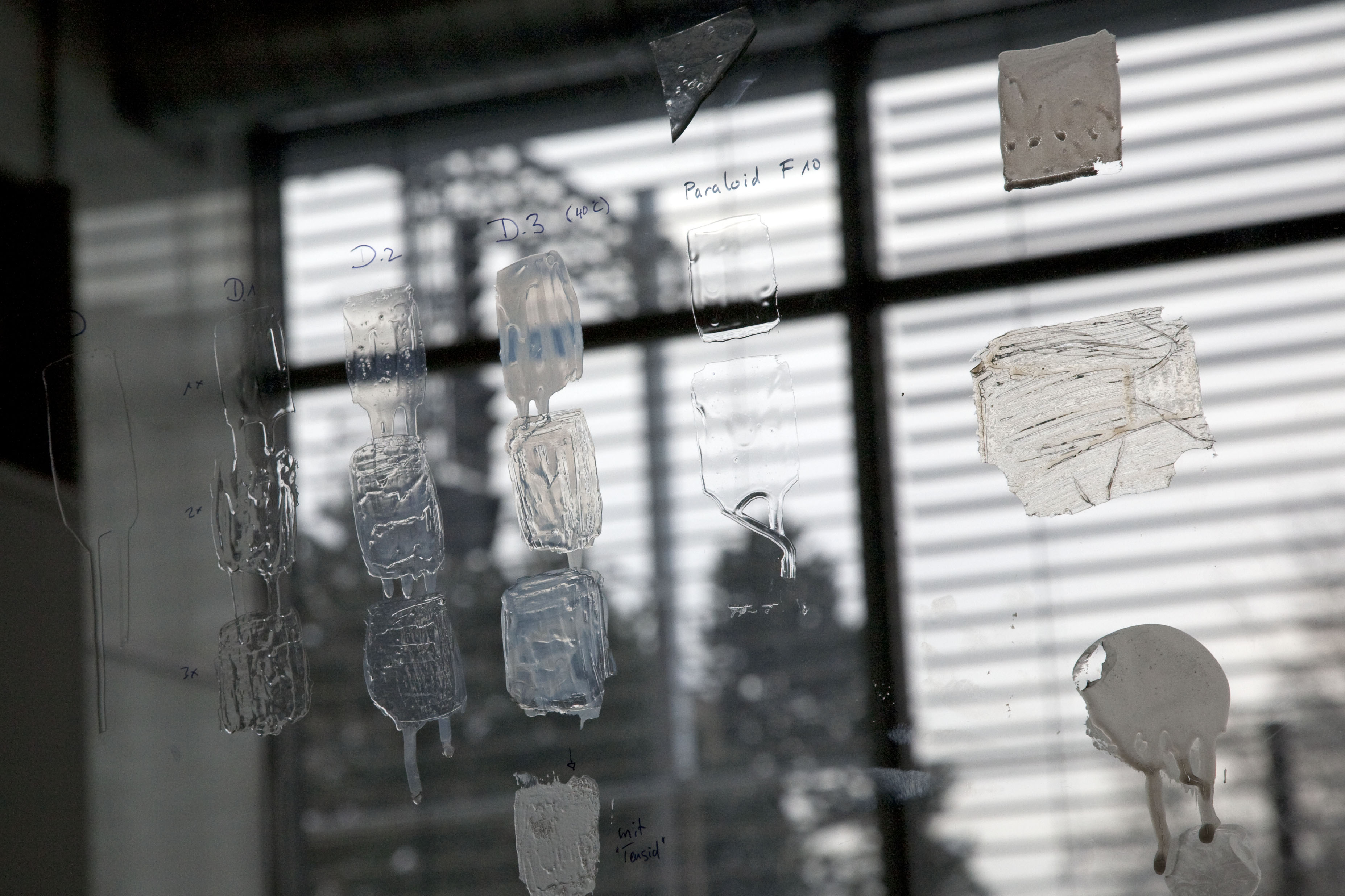 Synthetic materials make their way into works of art, as do combinations of used materials like paper, wood or terracotta with modern lacquers and glue. Using scientific methods the students set up an artificial ageing process and document and analyse the chemical and physical reactions of the materials. All part of their special training.