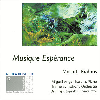 This production by the way showcases one of Switzerland’s leading orchestras, the Berne Symphony Orchestra, under the historical direction of its spirited principal conductor Dmitrij Kitajenko. Miguel Angel Estrella, the founder of Musique Espérance, is the soloist in this live recording of a concert featuring works by Mozart and Brahms.