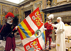 Pope Benedict XVI has held a private audience with the 30 new recruits to the Swiss Vatican Guard who took their vows of allegiance on Friday.