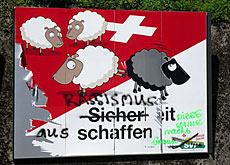On Wednesday Swiss President Micheline Calmy-Rey denounced posters depicting three white sheep booting a black sheep out of the country as “irresponsible” and liable to incite racial hatred.