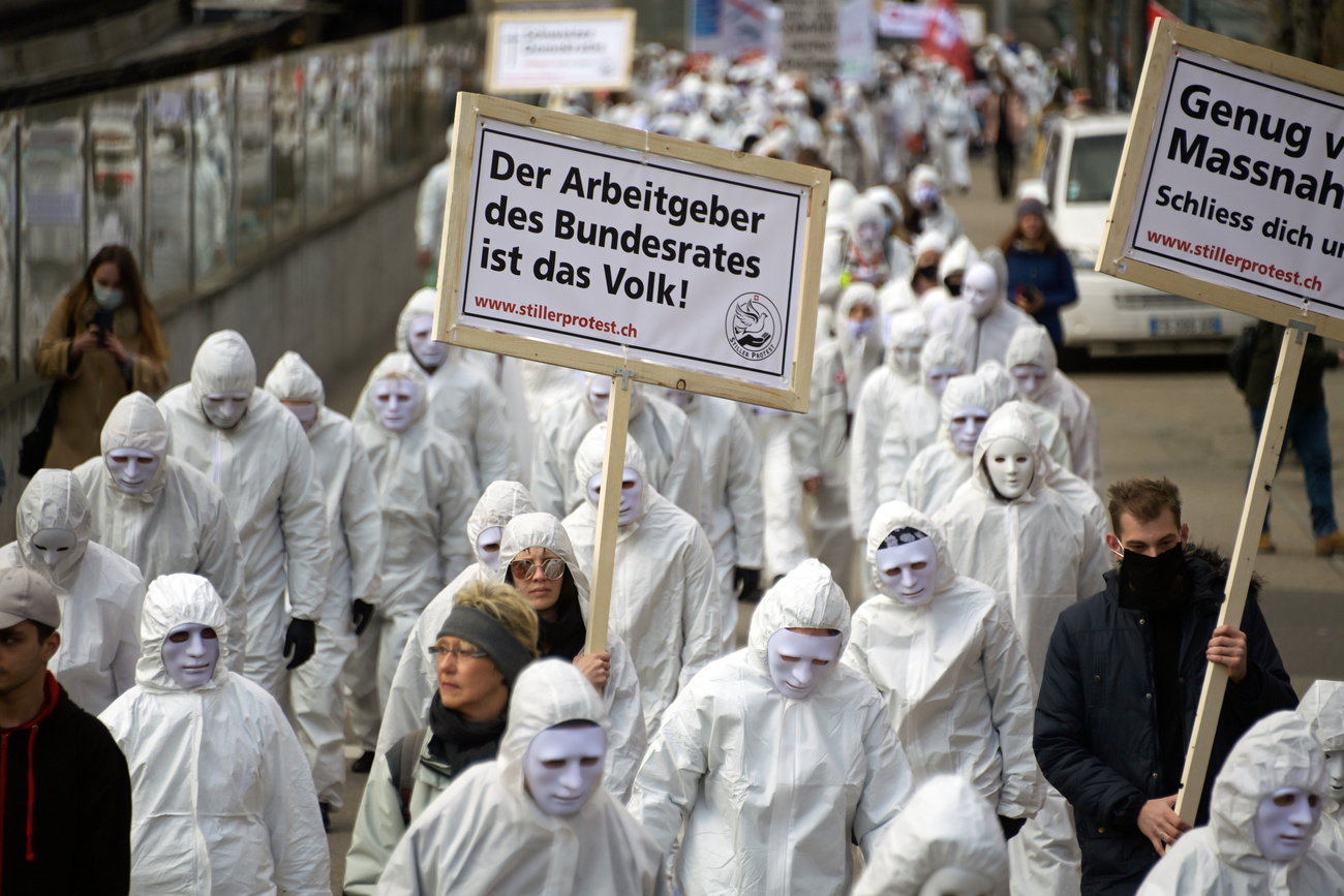 Since the first event organised by “Stiller Protest” last October, where 50 people showed up in Zurich, their geographic reach and numbers have been growing almost exponentially. A fortnight ago, 4,000 people marched in Chur in Canton Graubünden.