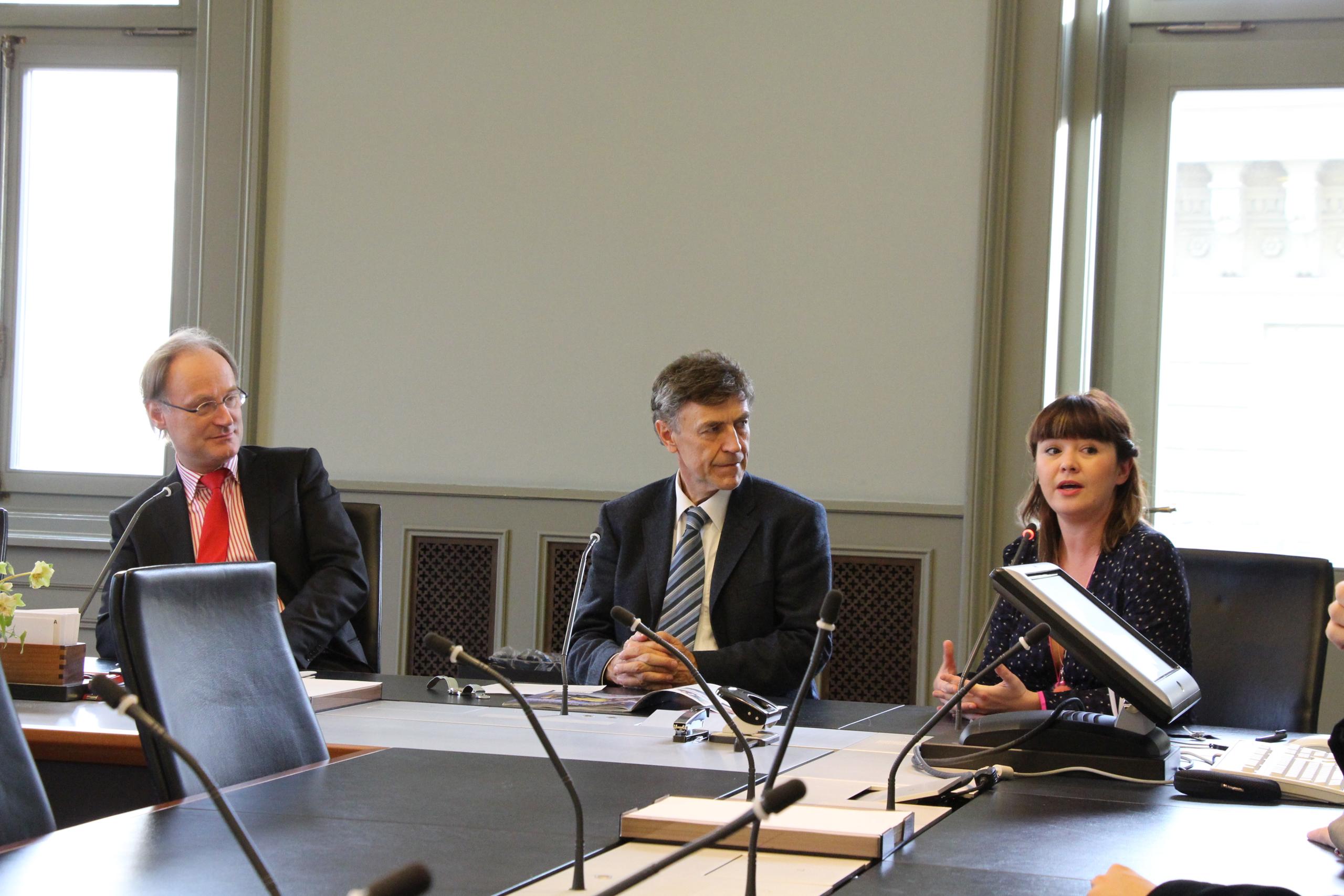 Referenda – Swiss style – are admired around the world by proponents of direct democracy. UKIP wants to introduce referenda at a local (county) and national level. Laure Ferrari from the Institute of Direct Democracy in EuropeExternal link, who arranged and moderated the meeting in Bern, posed the question of cost to Nidegger.
