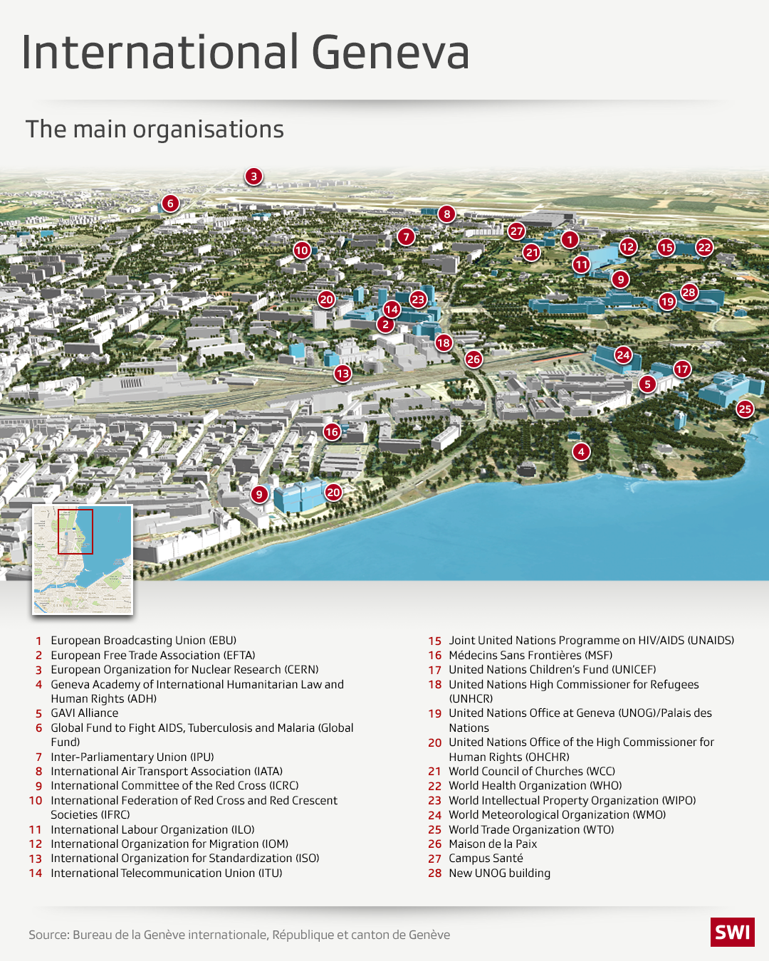 “The biggest multilateral centre in the world”, “the capital of peace”, “the foremost centre of global governance” – Swiss officials often reach for superlatives to describe the concentration of international organisations and players in a district 2km north of Geneva city centre. What exactly is International Geneva and why is it so important to Switzerland?
