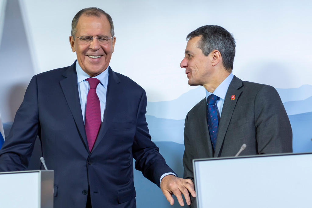 Swiss Foreign Affairs Minister Ignazio Cassis and his Russian counterpart, Sergei Lavrov, were all smiles for the press after a working lunch in Geneva on Wednesday on the margins of the Afghanistan Ministerial Conference at the United Nations.