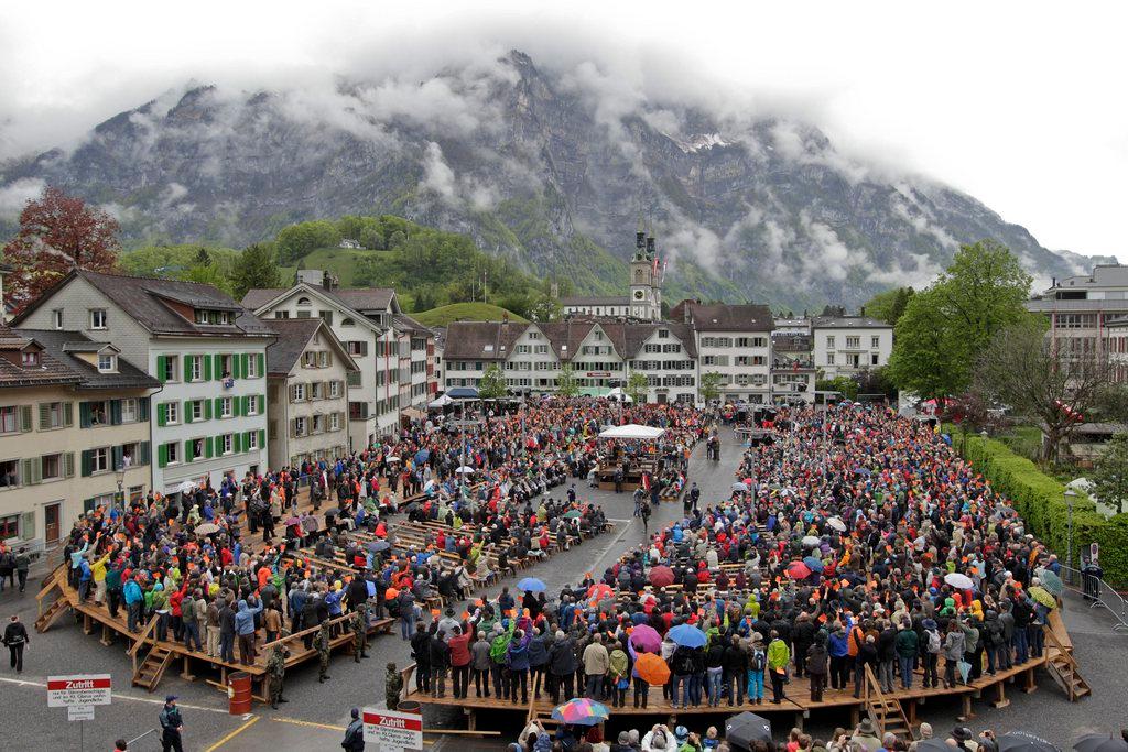 Glarus and Appenzell Inner Rhodes are the only two cantons where citizens meet every year to decide on political issues. Up to 12,000 people take part in the Glarus assembly.