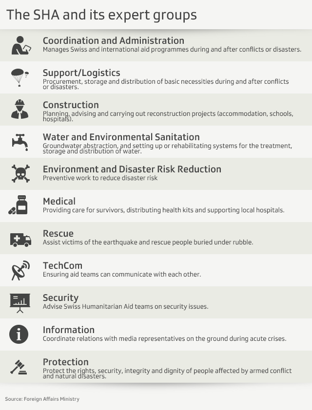 Whether it is water specialists, construction experts or mediators that are needed, Switzerland has some 700 experts who can be deployed in humanitarian crises or catastrophes all over the world. swissinfo.ch takes a closer look at this very special unit of Switzerland’s humanitarian aid.