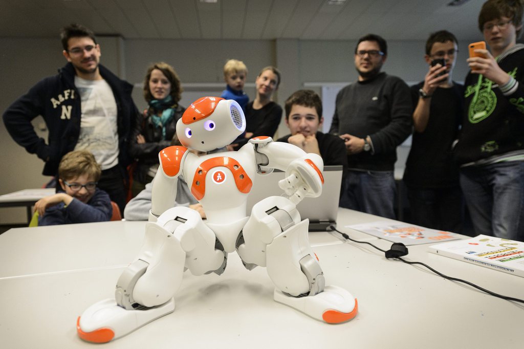 A humanoid robot named Nao busts a few moves during the Festival Robotique at the Swiss Federal Institute of Technology in Lausanne (EPFL) on Saturday. Nao later showed off his/her football skills.