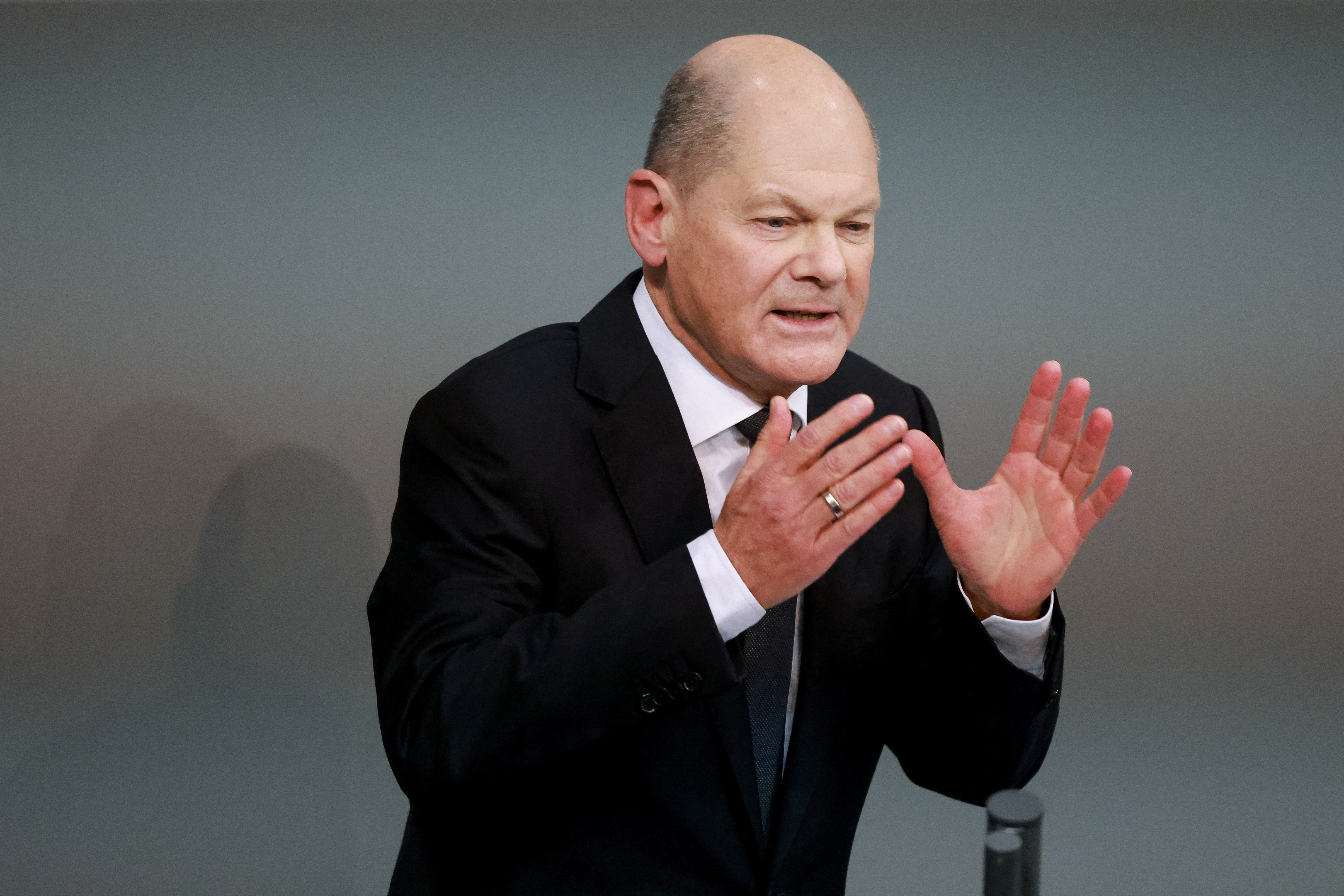 In an unusually combative speech during which he waved his clenched fists in the air, Scholz argued for a stronger EU.