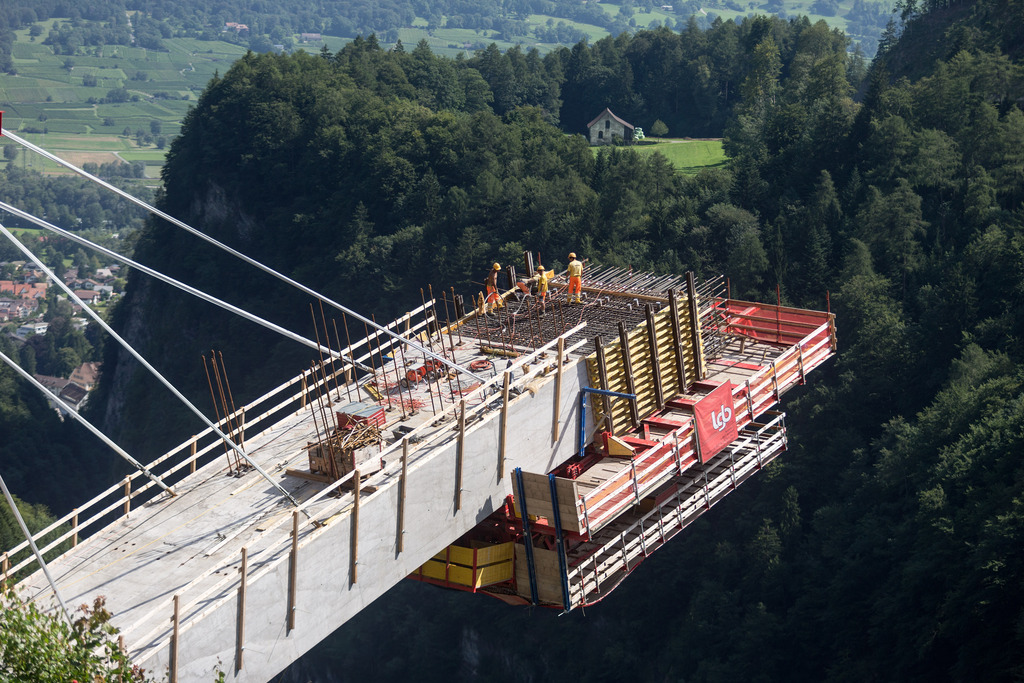 The bridge, which will cross the Tamina Gorge and join the communes of Pfäfers and Valens in canton St Gallen, will have an arch span of almost 260 metres and a total length of 475 metres. Thirty-five metres have already been completed on the Pfäfers side and 20 on the Valens side (pictured here).