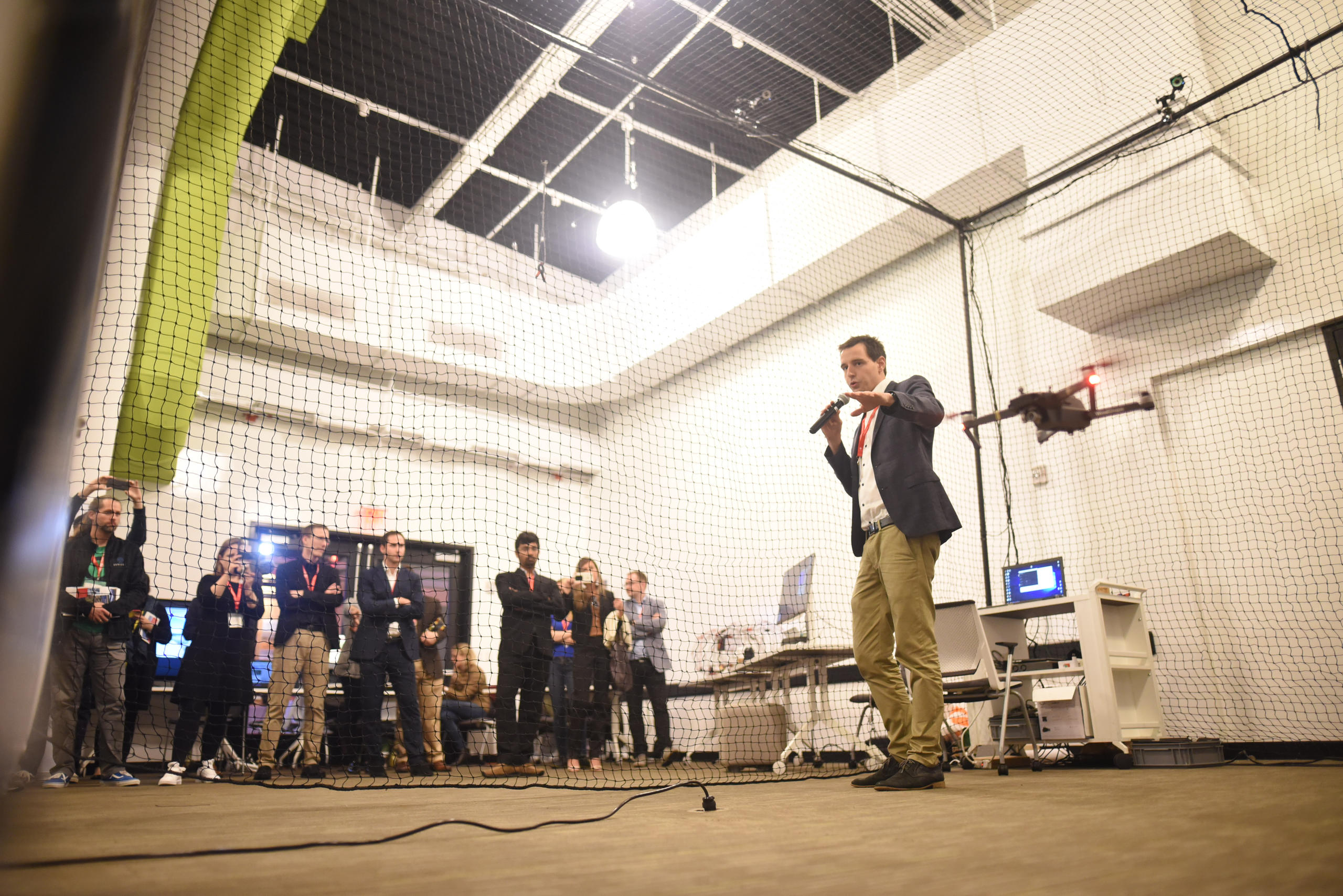 More than 25 researchers and entrepreneurs from Switzerland’s rapidly growing drone industry came to exchange ideas, experiences and technology with their North American counterparts and the Boston public. A“flying cage” was set up so the public could experience live demonstrationsExternal link of the latest drone technologies.