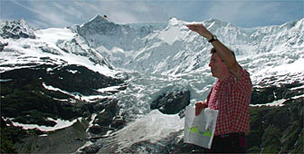 Climbing the trail to the Lower Grindelwald Glacier, Hans-Peter Holzhauser, a leading glaciologist from the University of Zurich, notes the alarming rate at which the Grindelwald is retreating.