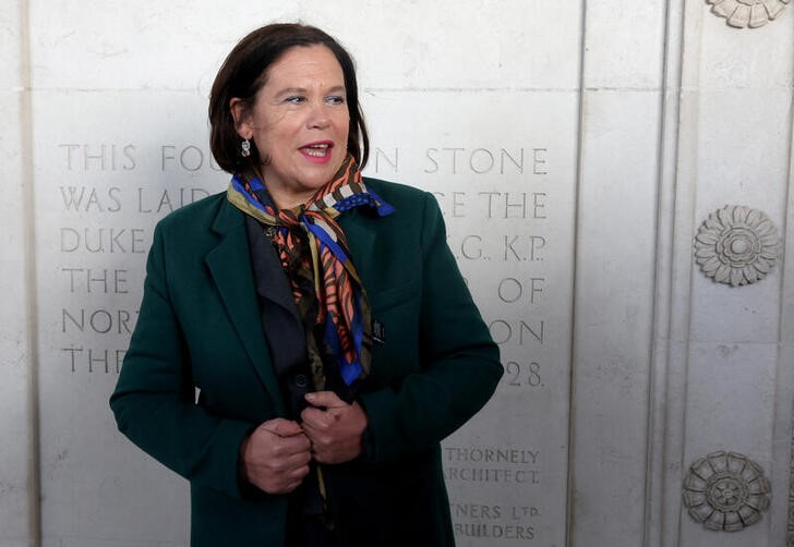 DUBLIN (Reuters) – Support in Ireland for Sinn Fein fell six percentage points to 28% in an opinion poll on Thursday, the second survey in the last two weeks to show a narrowing of its still wide lead ahead of an election due early next year.