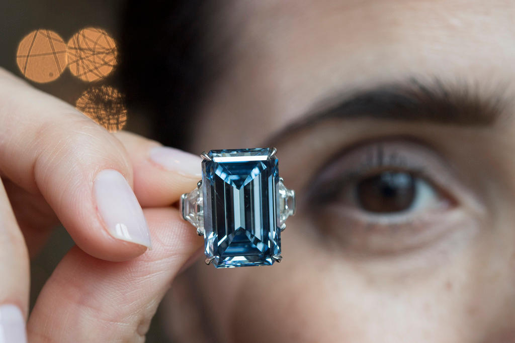 A blue diamond, the rarest kind in the world, has fetched a record price of $58 million (CHF57 million) at auction in Geneva, while a pink diamond did the same earlier this week.