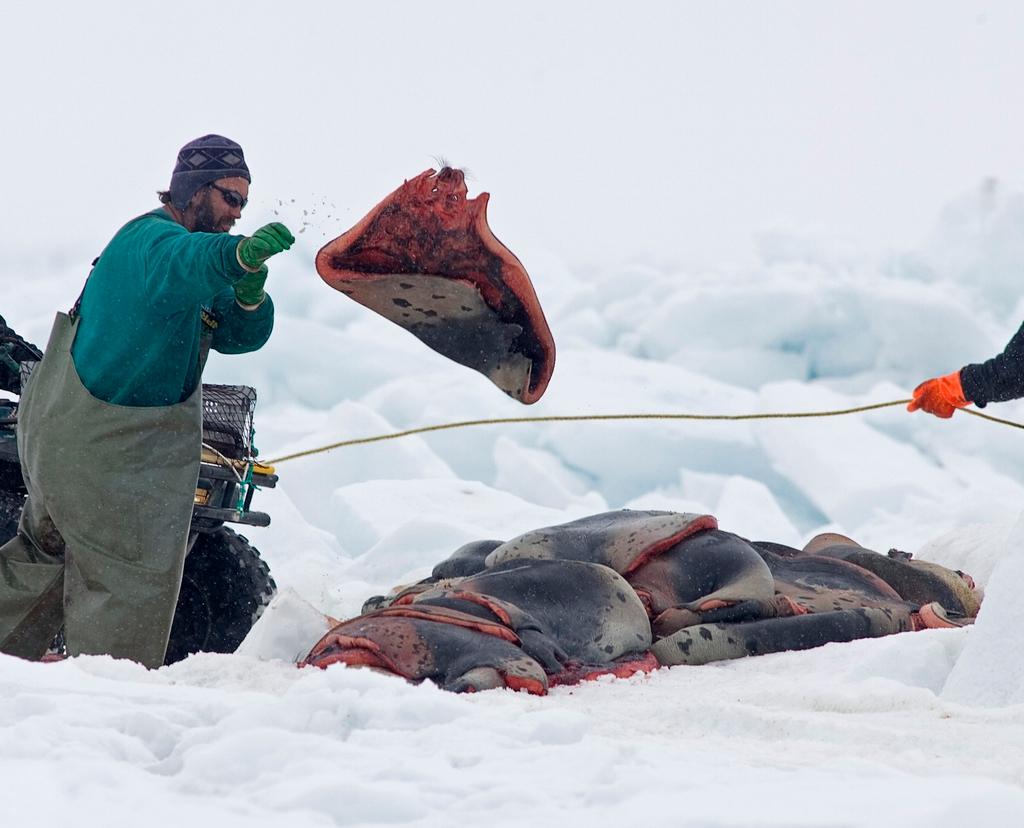 Seal hunting is permitted in Canada (above image from southern Gulf of St. Lawrence around Quebec's Iles de la Madeleine), Greenland and Namibia Keystone