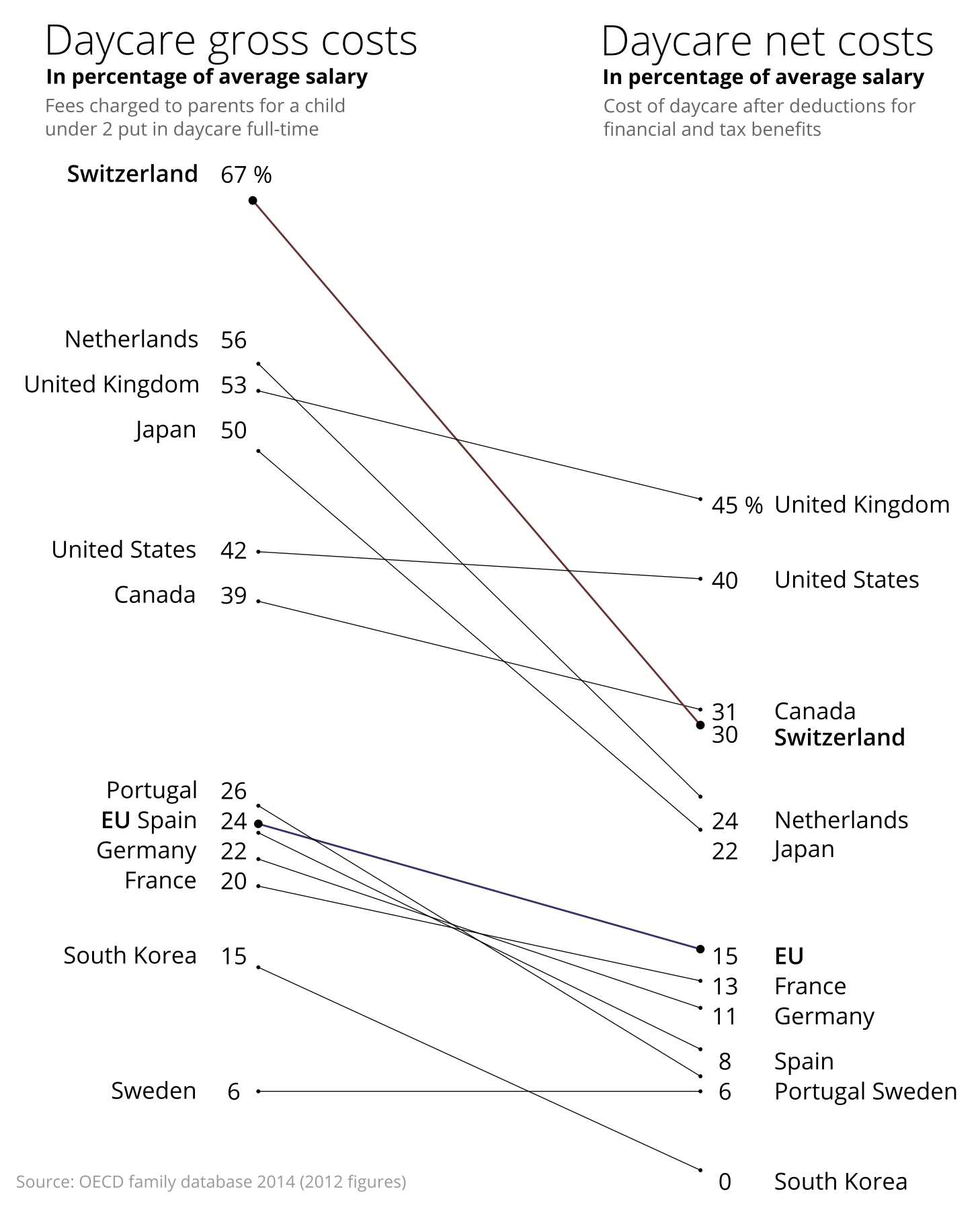 International studies support the view: Switzerland easily tops the list of Organisation for Economic Co-operation and Development (OECD) countries in terms of childcare costs.