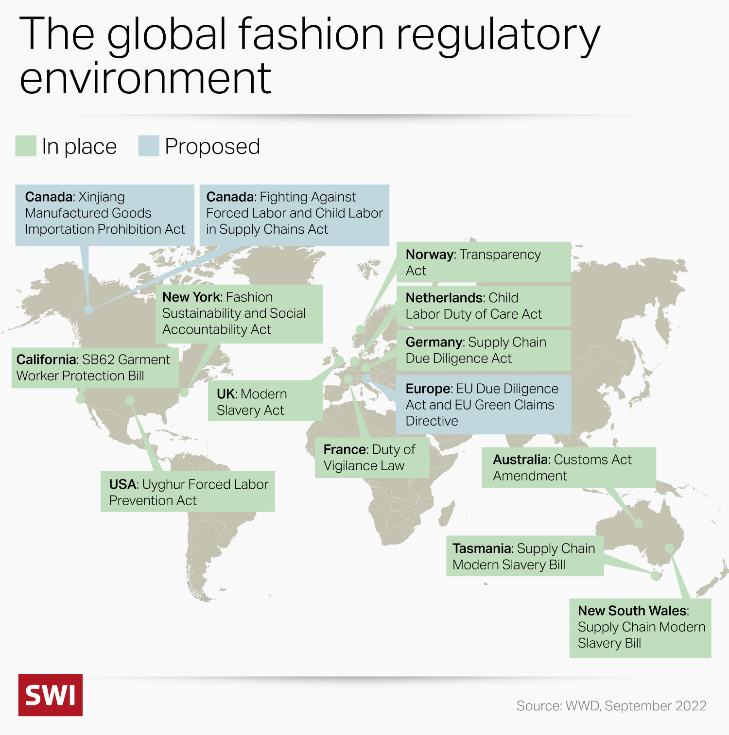“Brands who wish to continue their sustainable narrative will need to be more transparent about their supply chain, and to do so they will need to be able to trace back their products (from the sourcing of raw materials to its end-of-life) if they want to avoid hefty fines,” notes James Crowley, innovation analyst at Fashion for Good, an Amsterdam-based NGO.