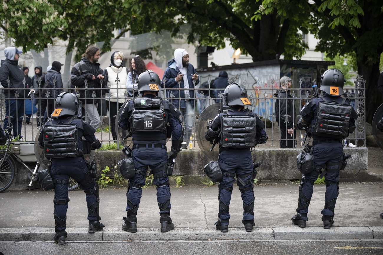 - Disturbances broke out in Zurich yesterday as tens of thousands of people attended more than 50 Swiss Labour Day events. By late-afternoon police used water cannon and tear gas against demonstrators after being pelted with objects, including fireworks. Some properties were daubed with paint as crowds in Zurich swelled to an estimated 10,000 people. By evening police said the situation was under control with 11 people taken into custody.