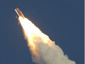 The Columbus laboratory, built by the European Space Agency (Esa), has begun its journey to the International Space Station (ISS) on board the shuttle Atlantis.