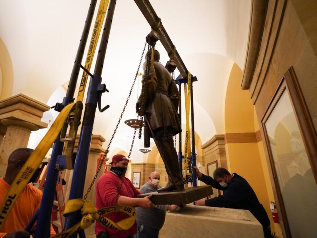 La statue du commandant des sudistes a été enlevée au Capitole. KEYSTONE/AP/Jack Mayer sda-ats