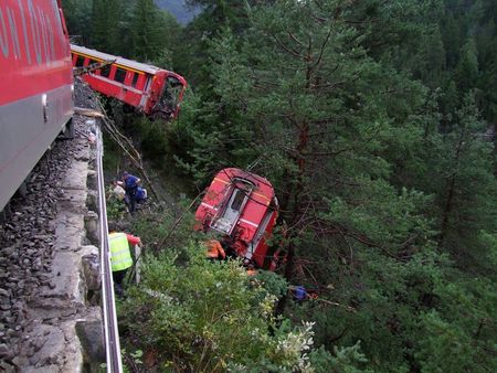 ZURICH (Reuters) – A passenger train derailed into a ravine in a mountainous region of southeastern Switzerland after encountering a mudslide on the tracks, Swiss police said on Wednesday.