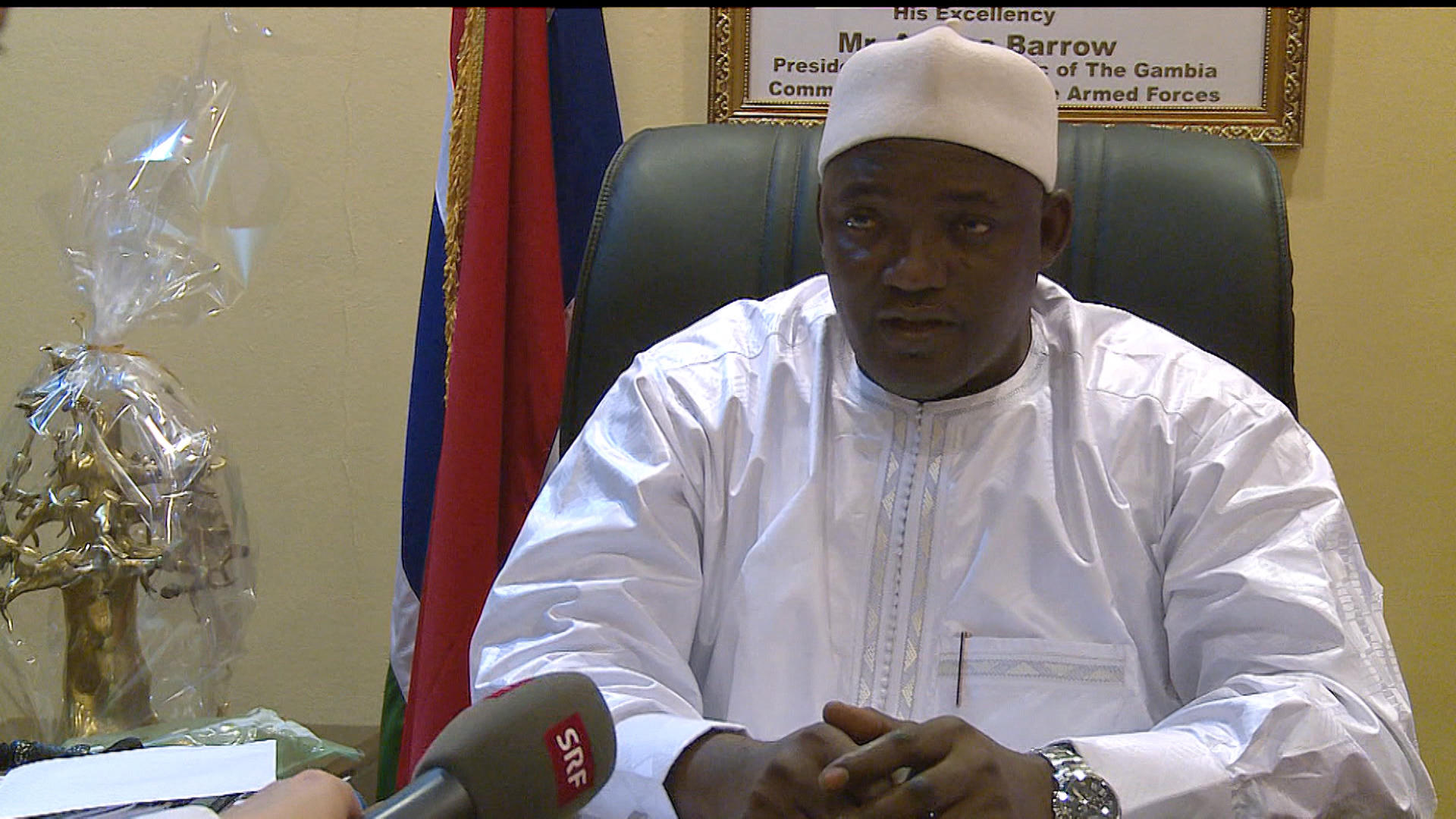 Adama Barrow, Gambia’s new president, says living under the old regime was very difficult. (SRF/swissinfo.ch)