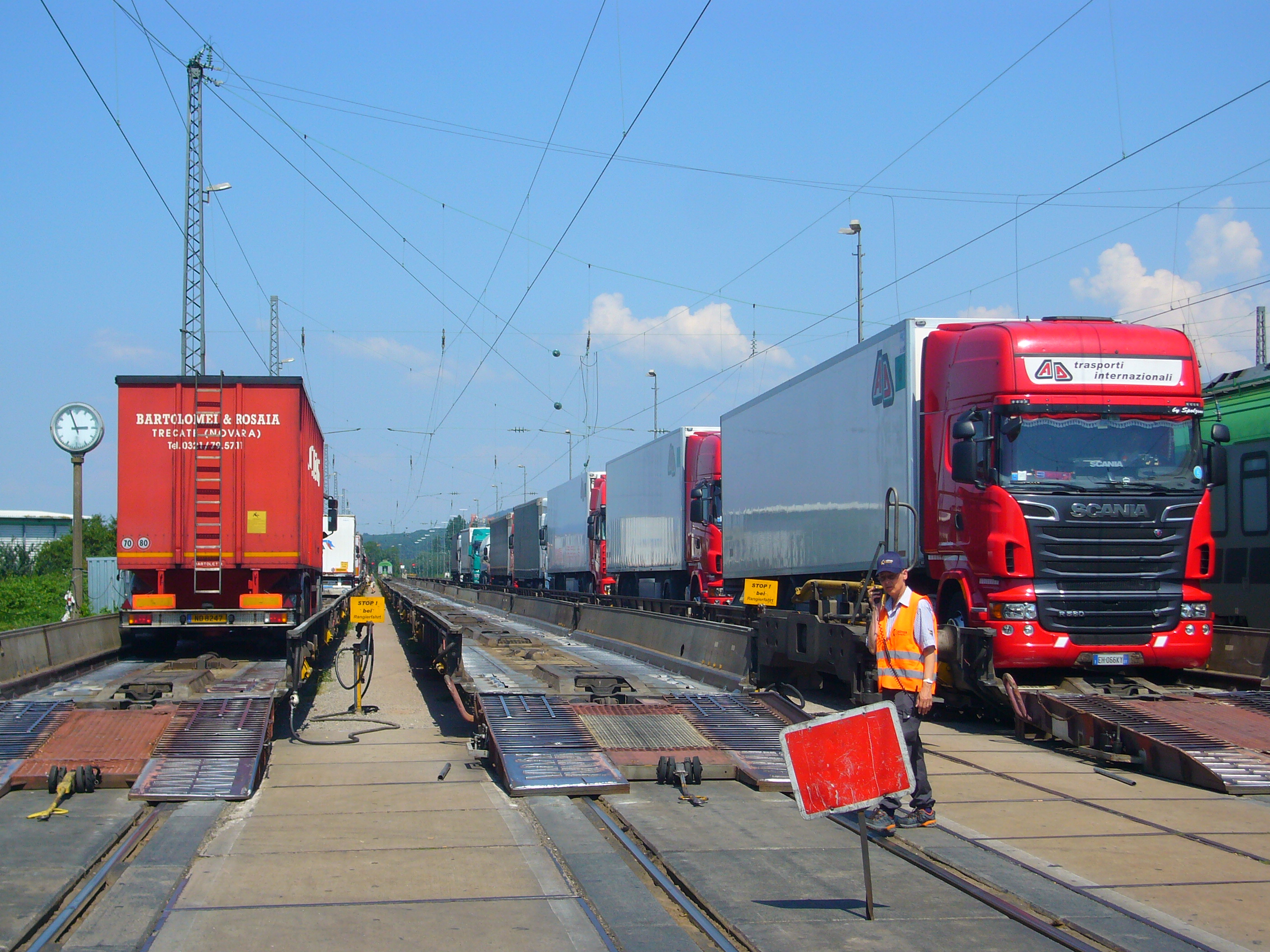 Up to 11 trains with a maximum load of 21 trucks make the trip daily with the Rola (Rolling Highway) in both directions between Freiburg im Breisgau, Germany and Novara in Italy on the Lötschberg-Simplon line.