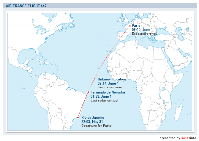 Air France flight 447 left Brazil on Sunday and lost contact with air traffic controllers during a severe storm. Swiss Transport Minister Moritz Leuenberger has sent a letter of condolence to his counterparts in France and Brazil.