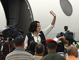 Clara Rojas welcomes freedom at Caracas airport in Venezuela Keystone