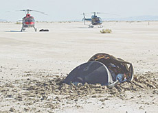 The Genesis space capsule was not entirely destroyed despite its high-speed crash in the desert. USAF 388th Range Sqd