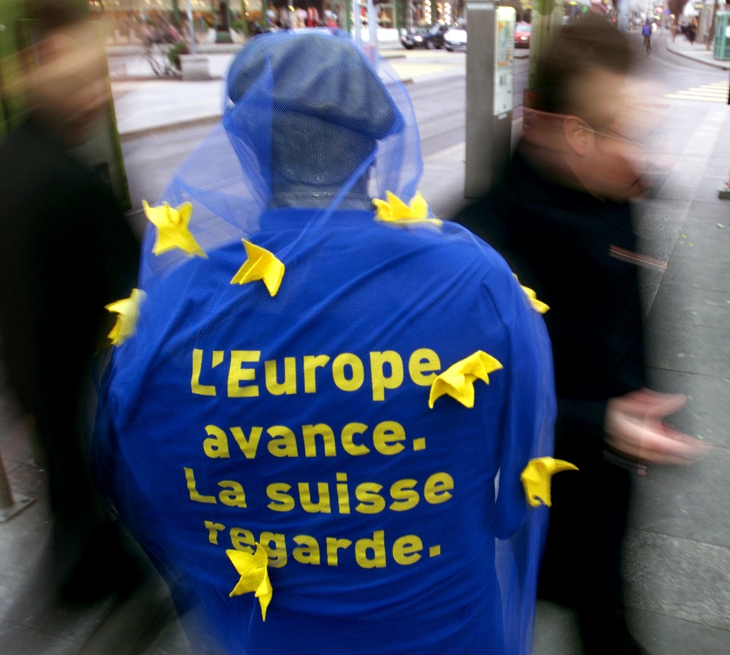 Switzerland has a turbulent relationship with the European Union. While many Swiss would be happy to join the EU, there are even more who are not interested as nationwide votes have shown in the past. (Keystone)