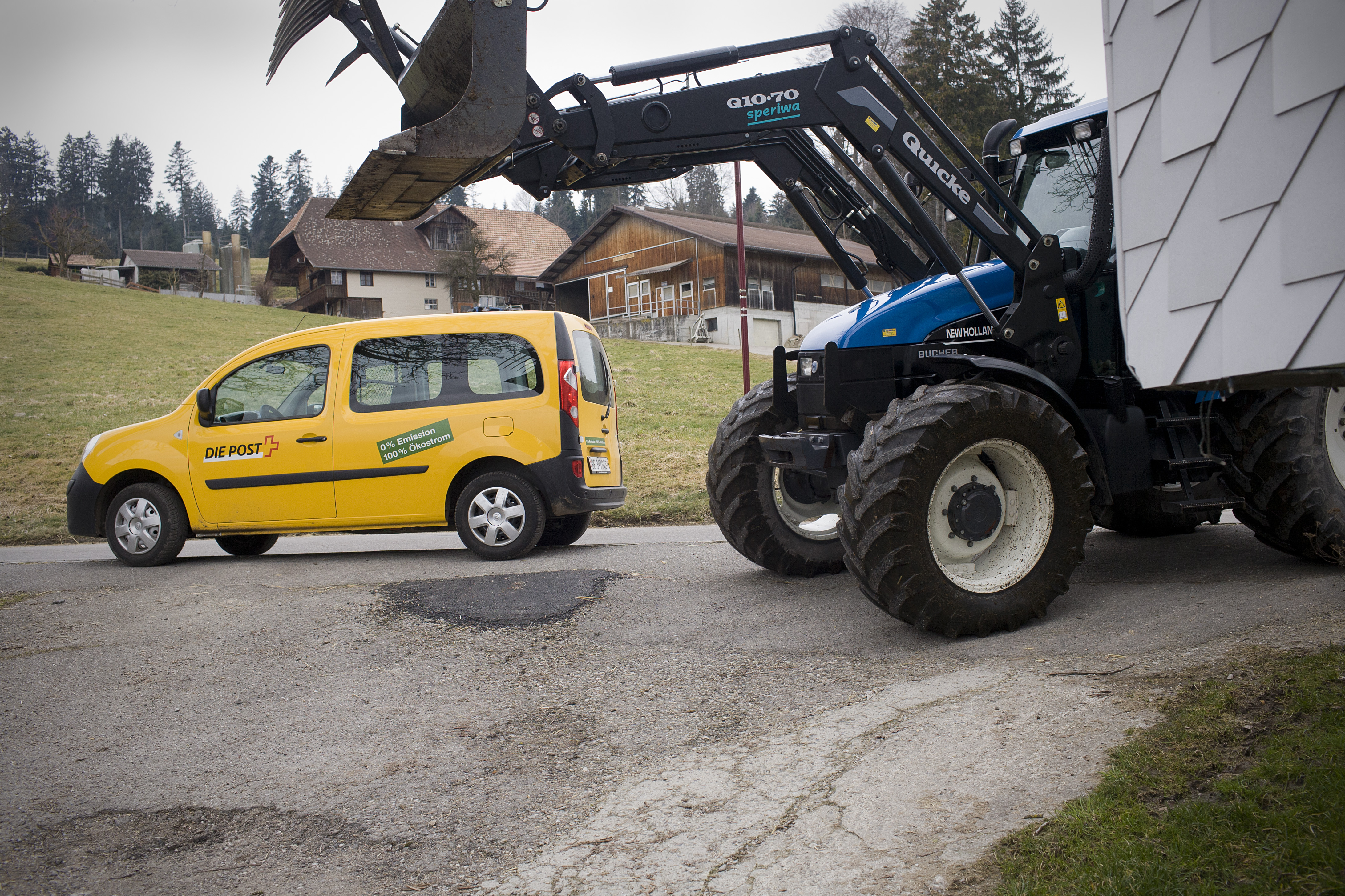 It is ideal for short distances and has an engine with rapid acceleration that purrs like a cat. These qualities make the electro vehicle perfect for Switzerland's postmen and women. swissinfo.ch accompanied Anita Arpagaus on her round through the hilly outskirts of the capital Bern.