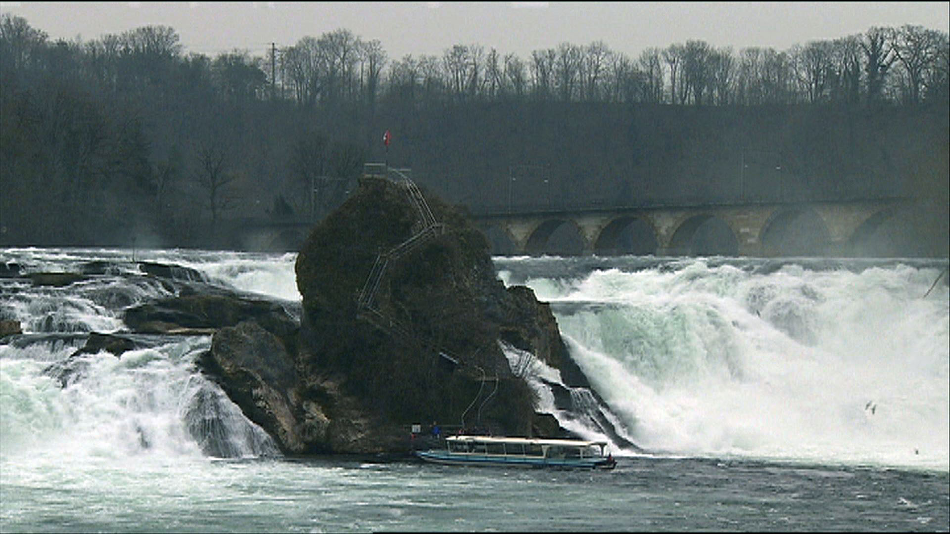 Not far south the valley narrows. Tourists snap away crazily as water crashes 23 metres over the 150-metre-wide river at the Rhine Falls – Europe’s most powerful waterfall.
