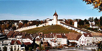 The route from the Munot into the old town of Schaffhausen passes through vineyards; this part of Switzerland makes wine, and the people of the region are justifiably proud of their Tokay, Pinot Gris, and Pinot Noir.