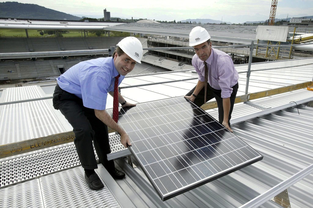There are three other football stadiums in Switzerland with smaller solar stations on their roofs: St Jakob’s in Basel (since 2001), Letzigrund in Zurich (since 2008) and SRG Arena in St Gallen (since 2009).