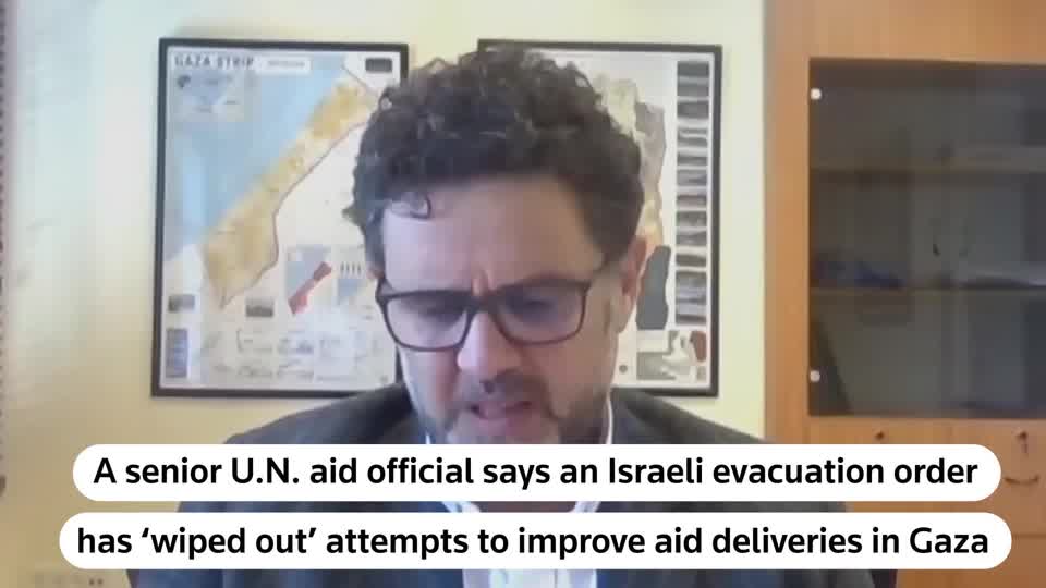 UNITED NATIONS (Reuters) – An Israeli military evacuation order covering a third of the Gaza Strip has “wiped out” the United Nations’ attempts to improve humanitarian aid deliveries via the Kerem Shalom crossing, a senior U.N. aid official said on Wednesday.