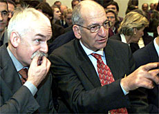 The new boss of the union, Hugo Fasel, (left) with the economics minister, Pascal Couchepin, on Saturday Keystone