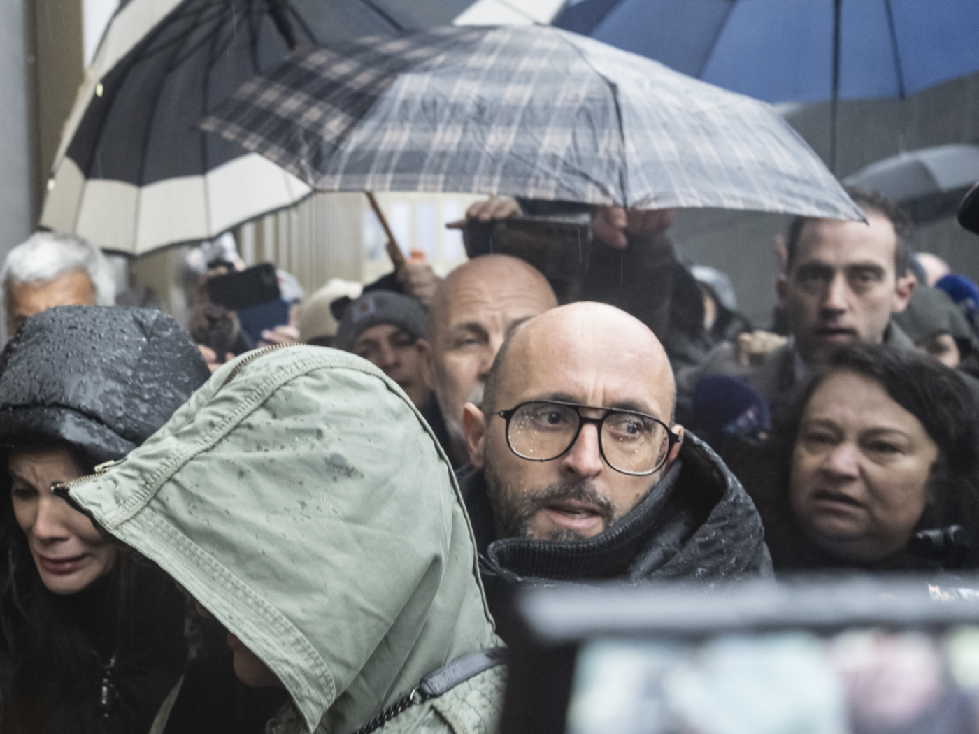 Jacques and Jessica Moretti were heckled as they approached the Energypolis campus in Sion, canton Valais.
